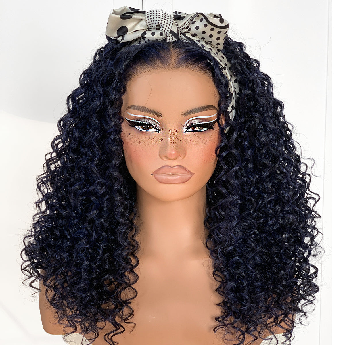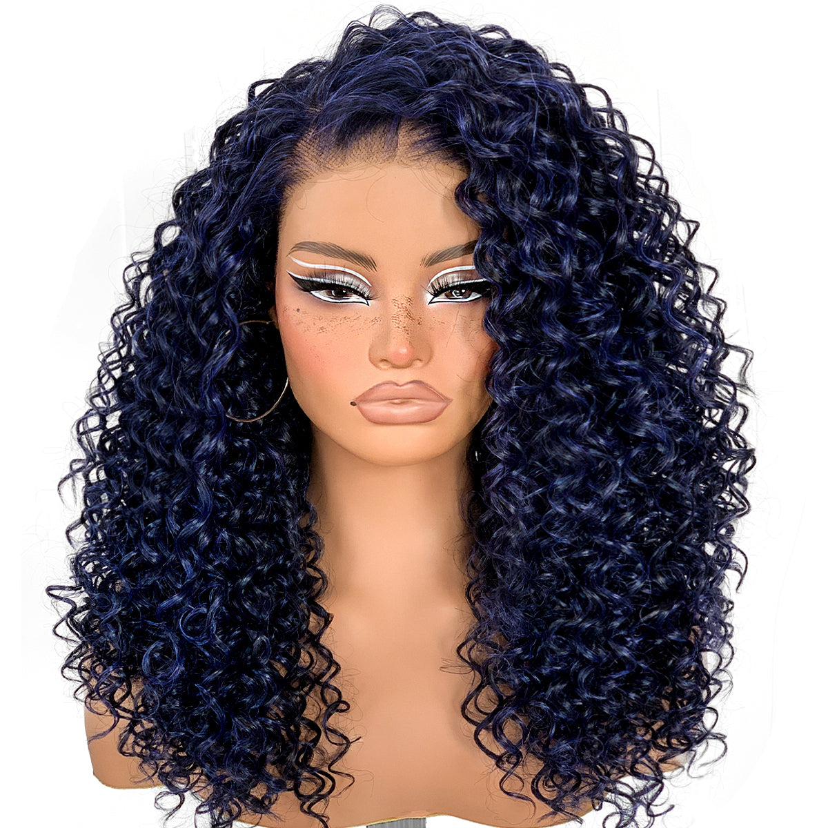 Dark Blue Wear And Go Glueless Wig Pre-Plucked Synthetic HD Lace Frontal Wig 13x6 Afro Wig Kinky Curly With Layer