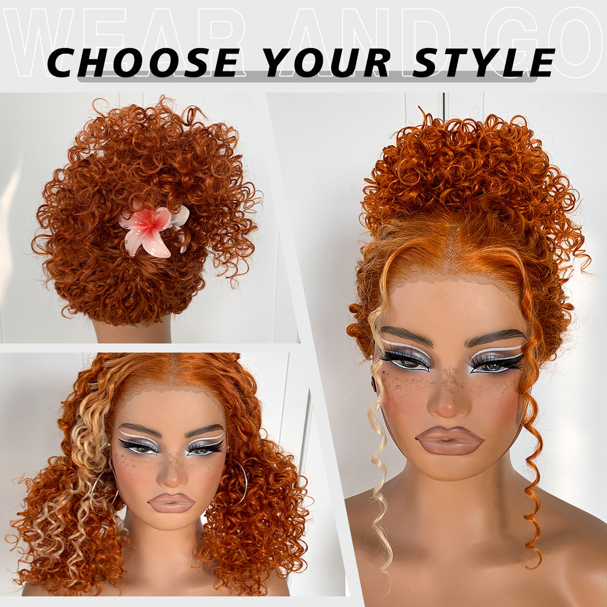 Ginger Curly Wig Skunk Strip HD Lace Front Wig Pre-Plucked Wear And Go Glueless Afro Wig Synthetic Orange Kinky Curly Layered Wig