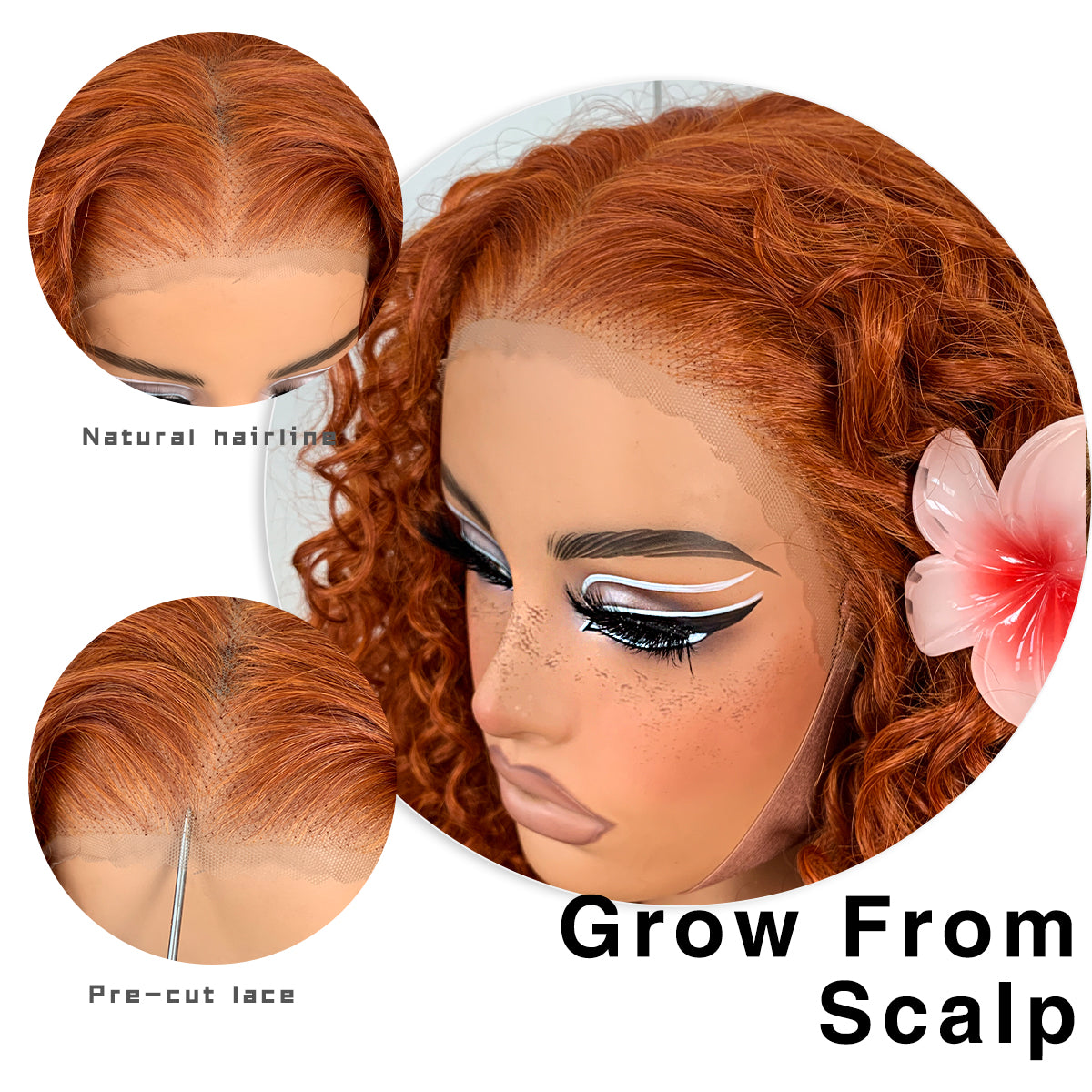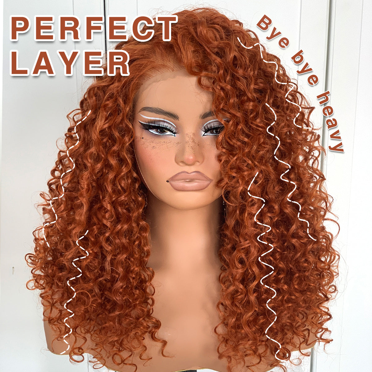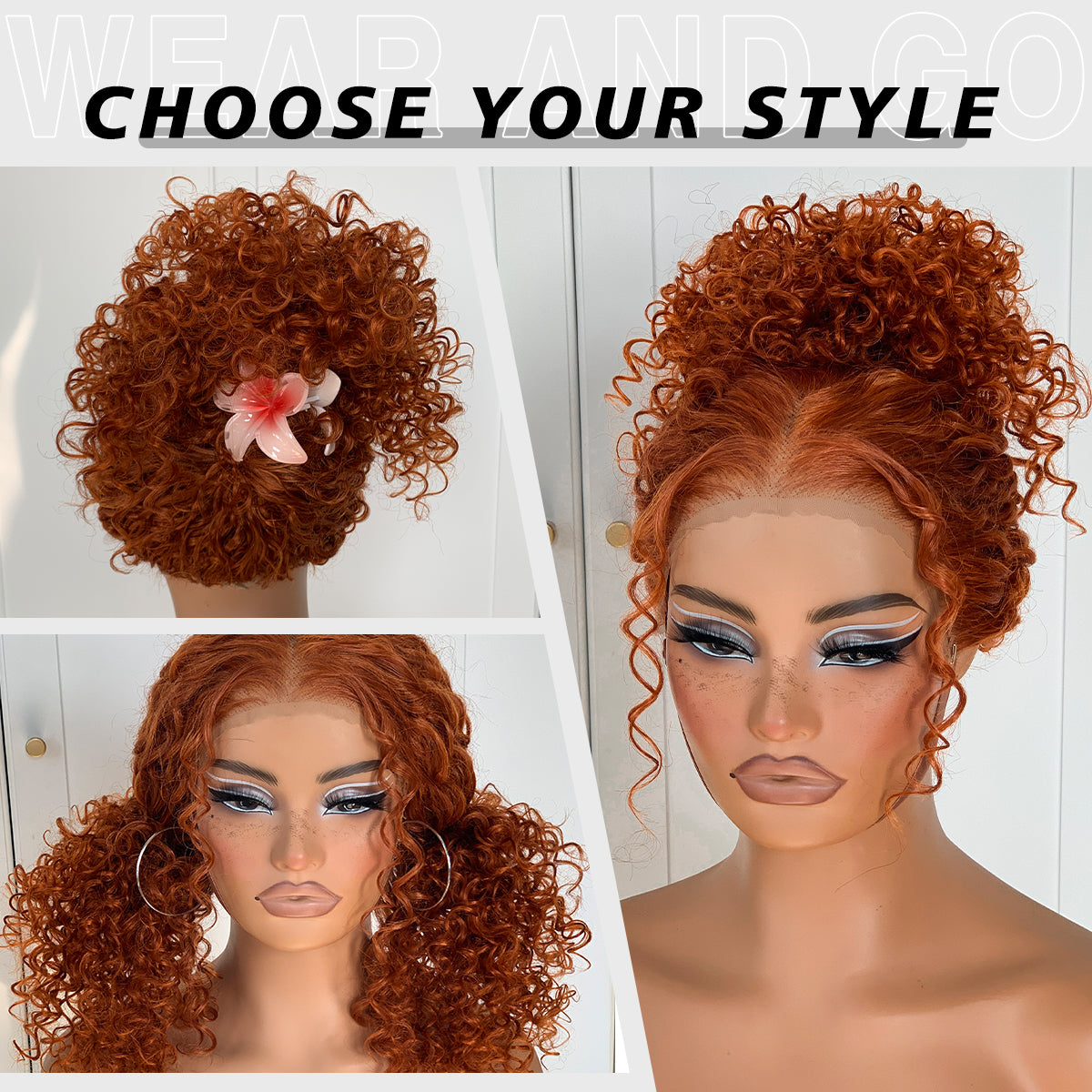 Glueless Ginger Curly Wig Pre-Plucked Wear And Go Synthetic HD Lace Front Wig 13x6 Layered Afro Curly Wig For Beginners 18 Inch