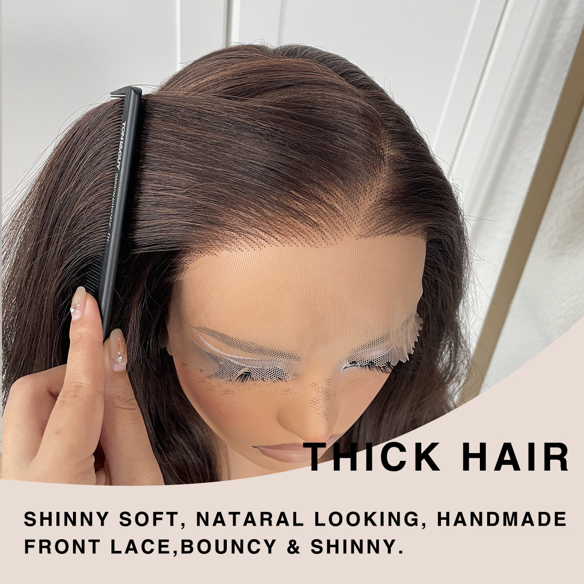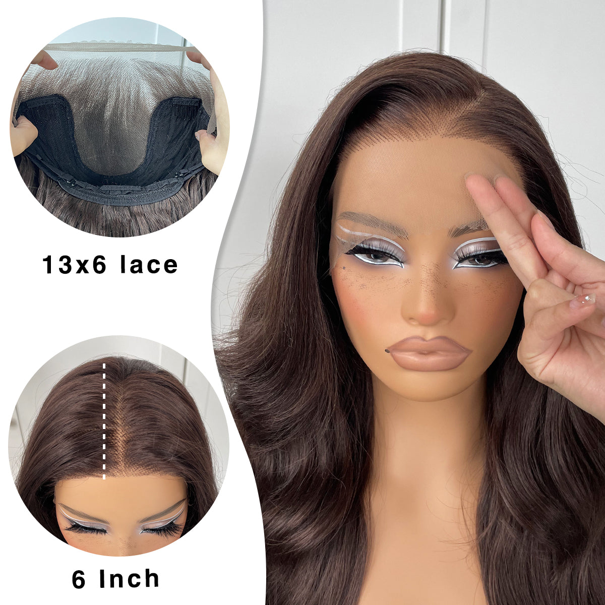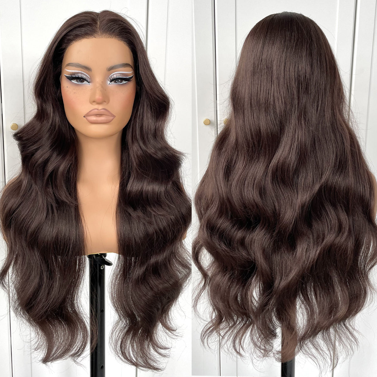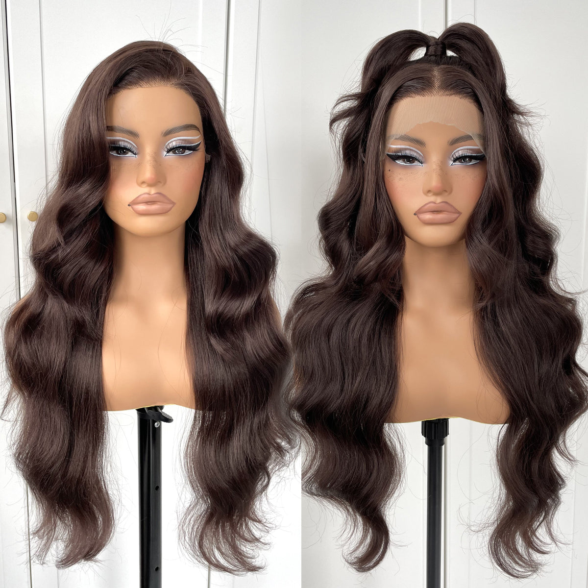 MITIMES 13x6 chocolate brown wig Glueless HD Lace Front Wig Pre plucked Synthetic Long body wave lace front wig Wear and Go HD Lace Front Wig