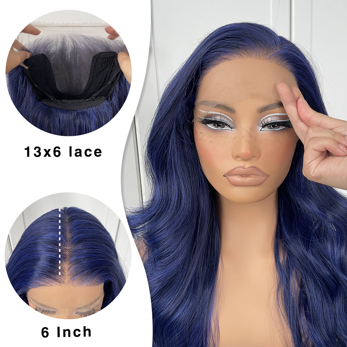 MITIMES 13x6 Glueless Blue Body Wave Lace Front Wig Pre Plucked Synthetic Dark Blue HD Lace front wig for fashion women transparent lace front wig for cosplay party