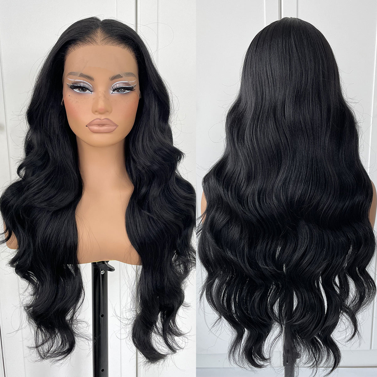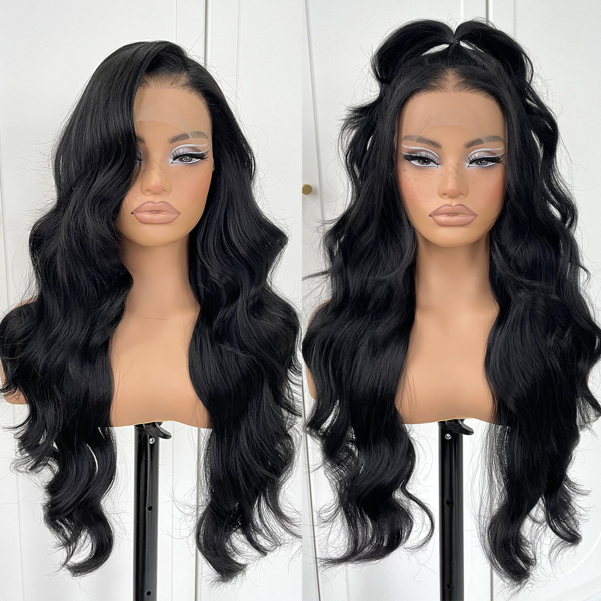 MITIMES 13x6 glueless HD Lace front wig pre plucked pre cut Synthetic Long body wave lace front wig Black Wavy Wig with natural hair line