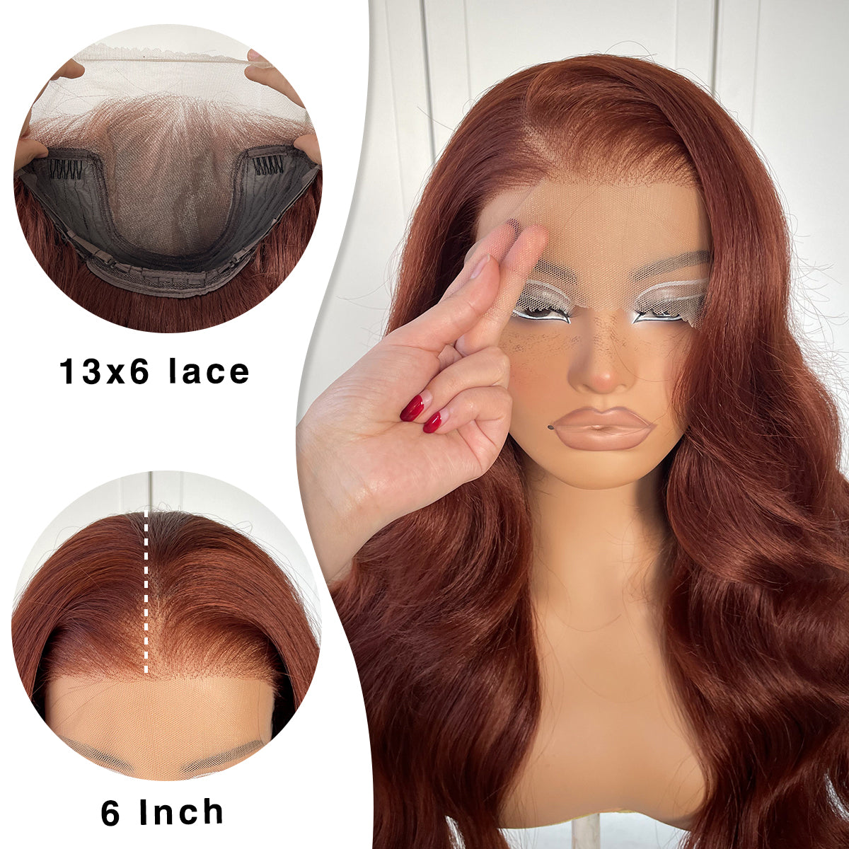 MITIMES 13x6 Glueless Reddish Brown Lace Front Wigs Pre-Plucked Red Brown Body Wave HD Lace Front Wig Synthetic Wear And Go Glueless Wig