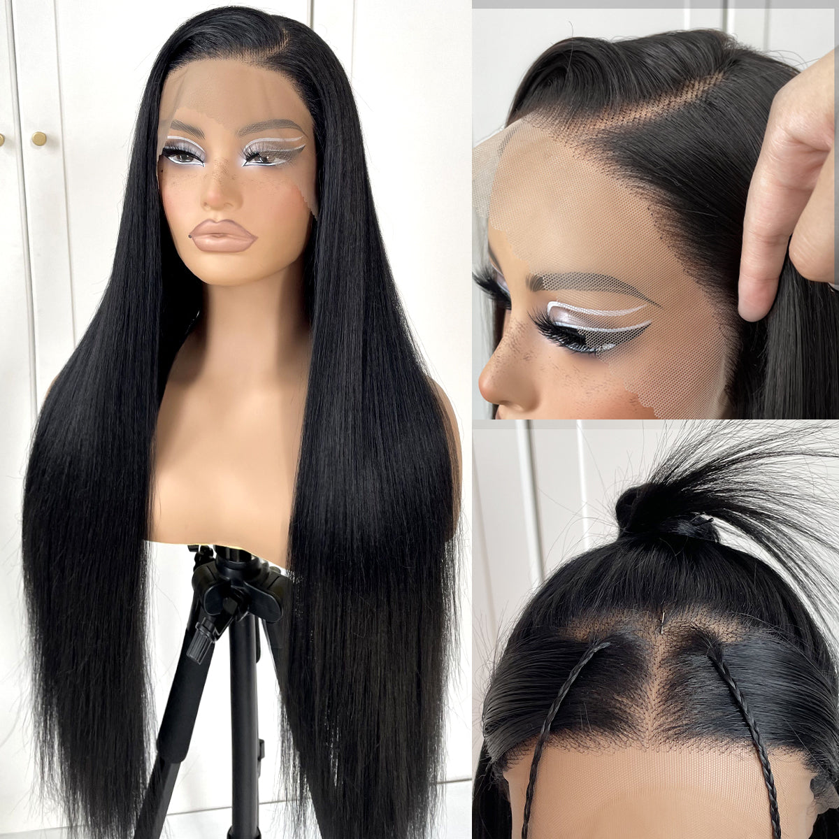 MITIMES 13x6 Long Straight Lace Front Wigs Natural Black Glueless Straight Hair Lace Front Wig Pre Plucked Yaki Synthetic HD Lace Front Wig 32inch