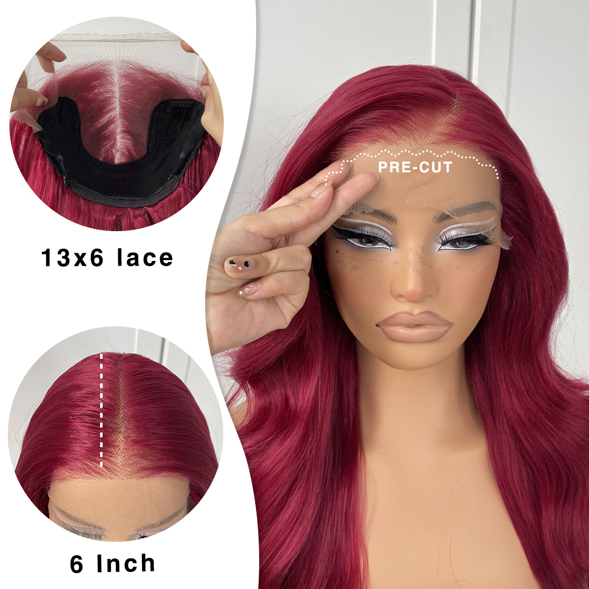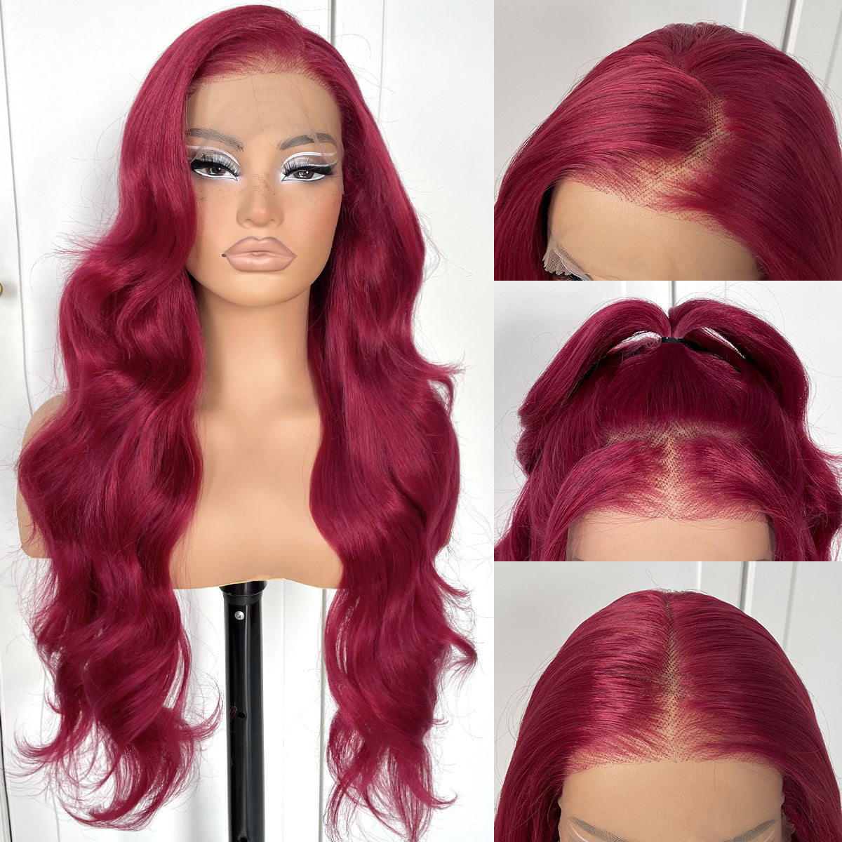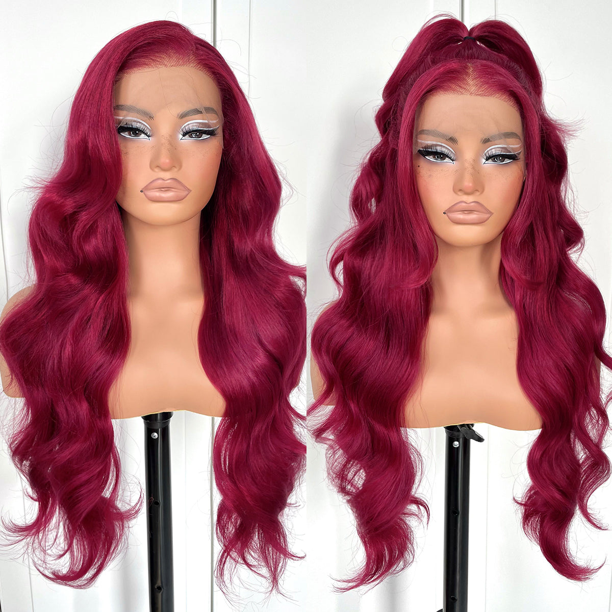 MITIMES 13x6 Red Body Wave HD Lace Front Wig Glueless Synthetic 99j Burgundy lace front Wig pre-plucked Wear And Go Long body wave lace front wigs