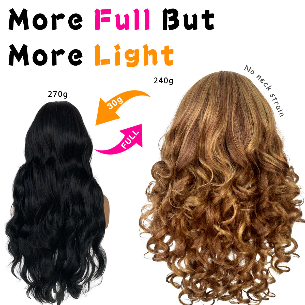 1.More Full But More Light:Yaki texture makes the hair more natural and full,but the 26 inch hair only have 240g,it’s easier and lighter to wear,No neck strain,No pull the scalp