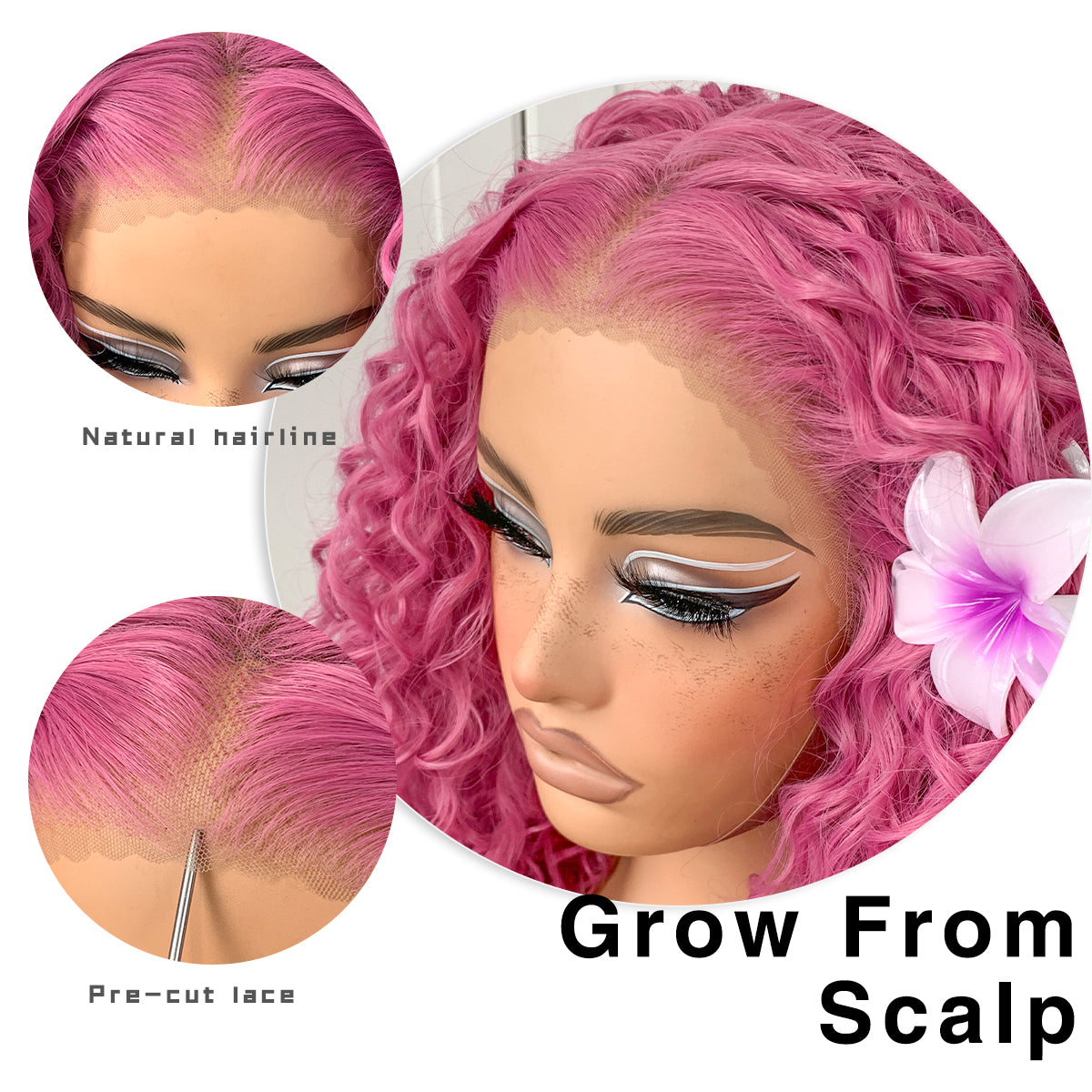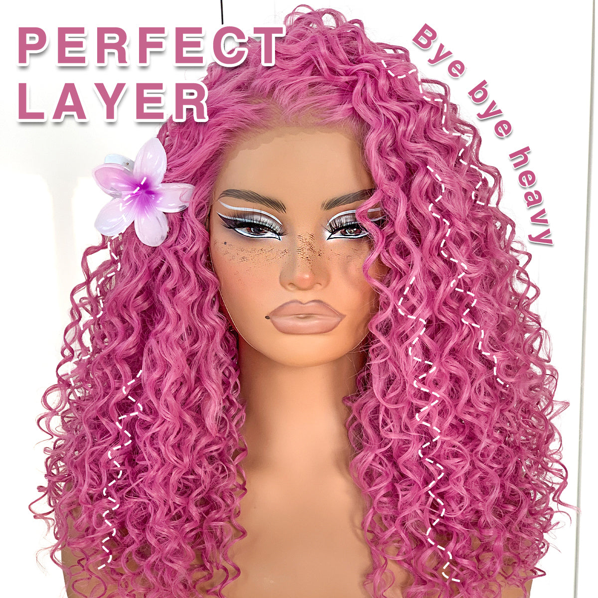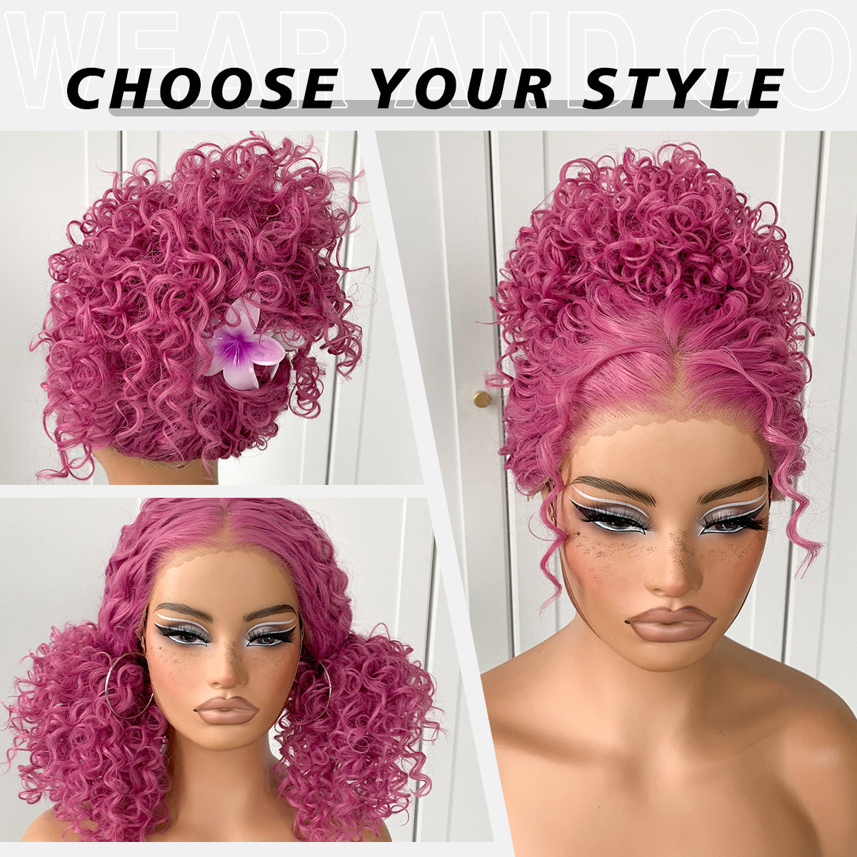 Purple Curly Wig Synthetic HD Lace Frontal Wig Pre-Plucked 13x6 Wear And Go Glueless Wig Afro Lavender Kinky Curly For Cosplay